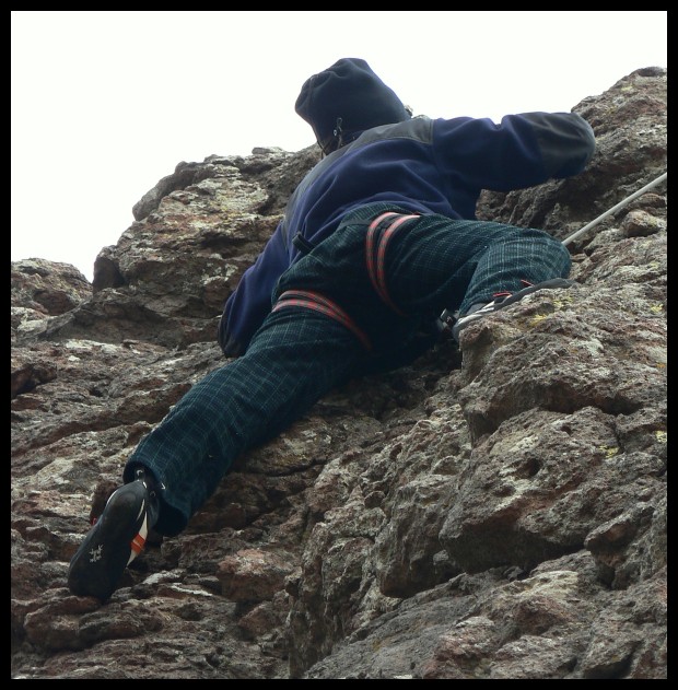 Deniz climbing up through the crack