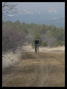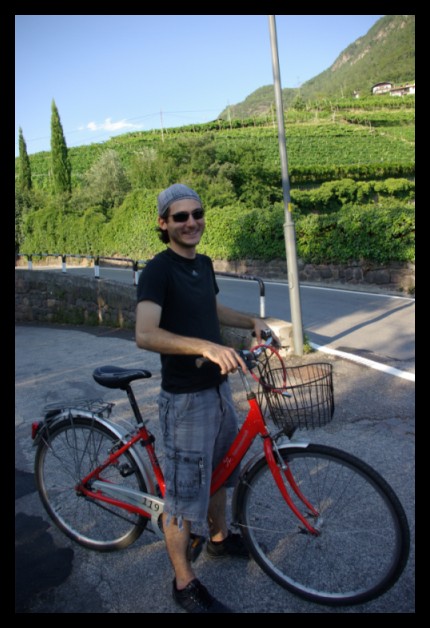 Deniz is tired after hours of cycling at Dolomite mountains, Italy